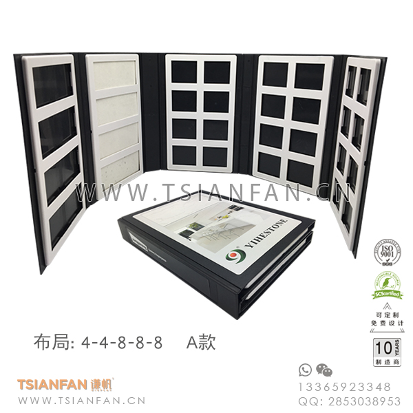 岗石塑料样品册是为石材、瓷砖、石英石或玻璃等建材样品而设计的, 要求您的样品应低于5mm厚度。