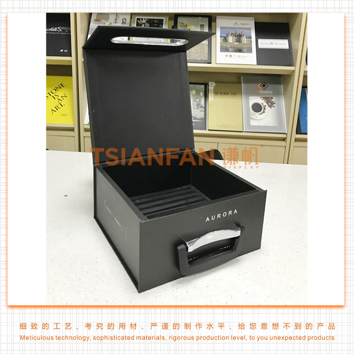 找人造石手提包装盒,花岗岩翻盖样品盒,黑色石材手提式样板盒尽在谦帆展架,更高折扣,品质护航购物无忧,!上谦帆,就够了!